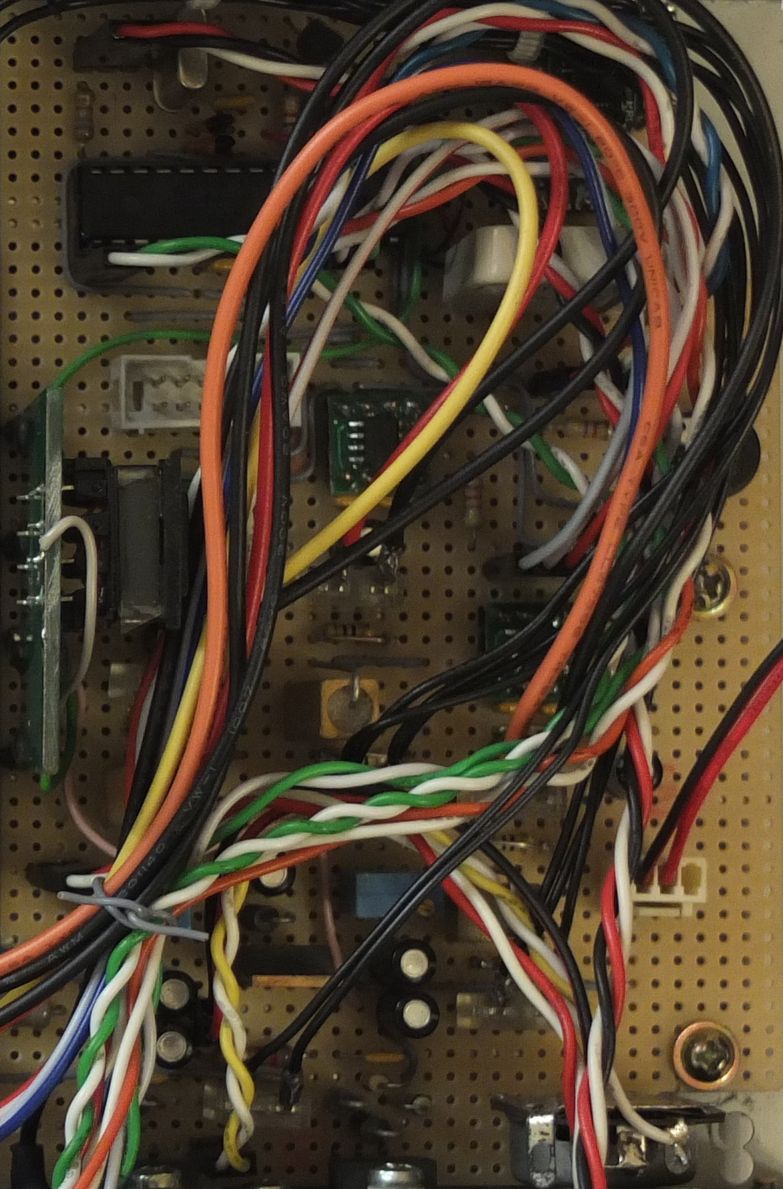 Streifenleiterplatte Die Bauelemente der selbst entworfenen Schaltung wurden auf einer Streifenleiterplatte montiert. INA219 auf Adapterplatine Das sind also unter anderem 3 Stück Strom-/Spannungswandler vom Typ INA219 nebst zugehörigen Shunts zur Strommessung. Diese Schaltkreise sind leider nur als SMD-Bauteile verfügbar. Sie wurden deshalb vorher auf kleine Adapterplatinen aufgelötet.  Ich habe keine speziellen Shunts für die Strommessung verwendet, sondern zufällig vorhandene Leistungswiderstände mit 0,1 Ohm. Die im Stromlaufplan angegebene Schutzbeschaltung an den Eingängen der INA219 mit jeweils 2*10 Ohm/100 nF erwies sich im Test allerdings als unbrauchbar. Deshalb wurden die Widerstände mit 10 Ohm später im Aufbau überbrückt. Der Prozessor, ein ATmega168PA im DIP-Gehäuse sitzt auf der Leiterplatte ganz oben links. Er wurde auf einem Schaltkreissockel montiert. Unter dem Prozessor ist der ISP-Programmieranschluss zu sehen. Rechts oben vor der Rückwand ist das Mini-USB-Modul UM2102 verlötet. Die senkrecht aufgelötete Platine mit dem kleinen Trafo auf der linken Seite etwa in Bildmitte ist der Inverter für die Hintergrundbeleuchtung des LCD. Diese wurde aus der Originalleiterplatte des Gerätes, aus dem auch das LCD stammt, ausgesägt. Der Inverter benötigt 12 Volt Betriebsspannung. Über einen Steuereingang lässt sich der Inverter ein- und ausschalten. Da dieser Eingang intern mit den 12  Volt verbunden ist, wurde zur Ansteuerung ein Schalttransistor eingefügt. Sämtliche Anschlüsse der Leiterplatte wurden mit Steckern ausgeführt. So lässt sich die Platine einfach demontieren, falls doch einmal eine Reparatur oder Änderung erforderlich sein sollte.
